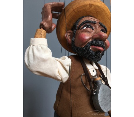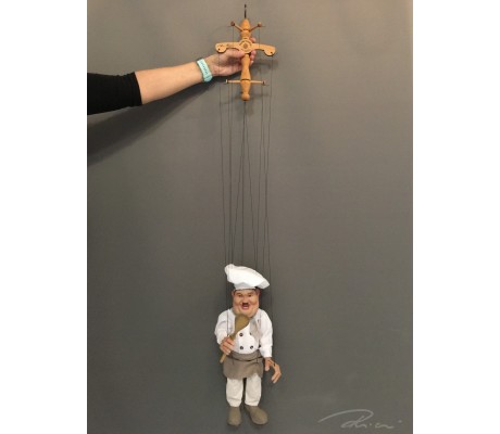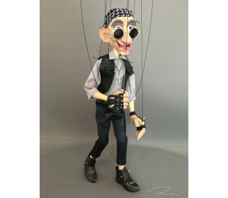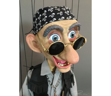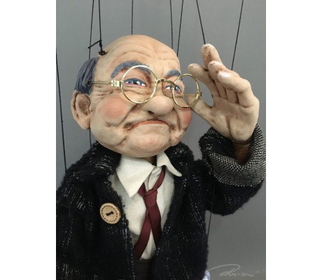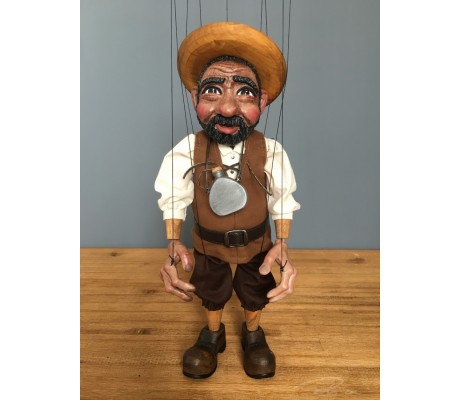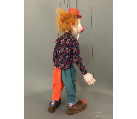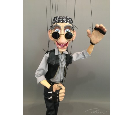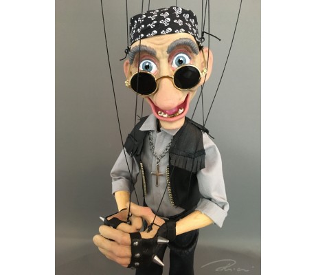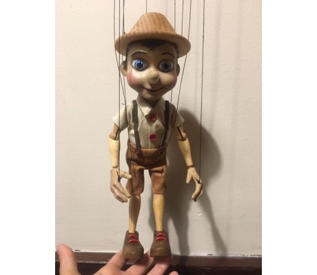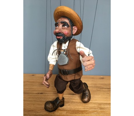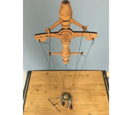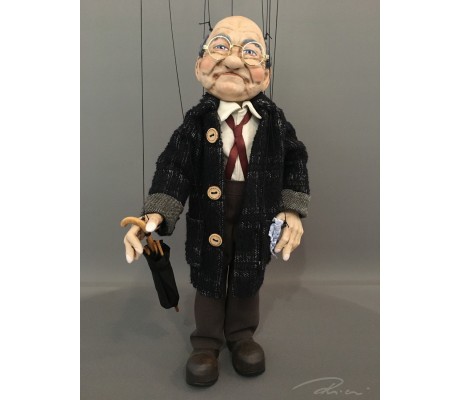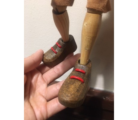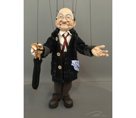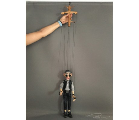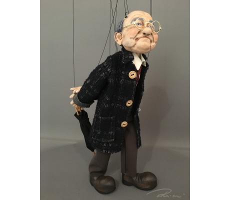 -Pupazzo professionale CHAPLIN artigianale costruito in materiale rigido (resina) con gambo in metallo, gamba e calzatura in legno intagliato e dipinto a mano.