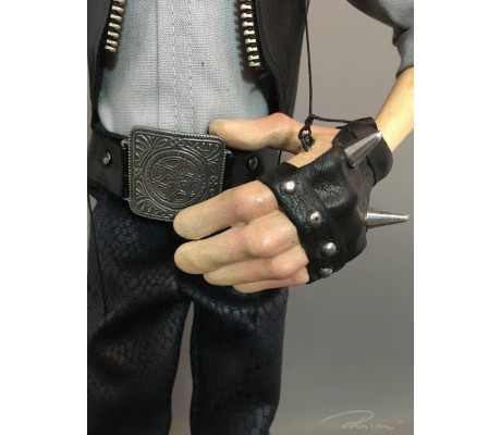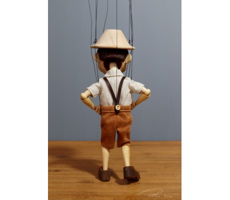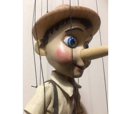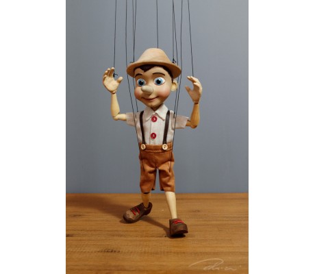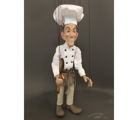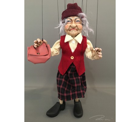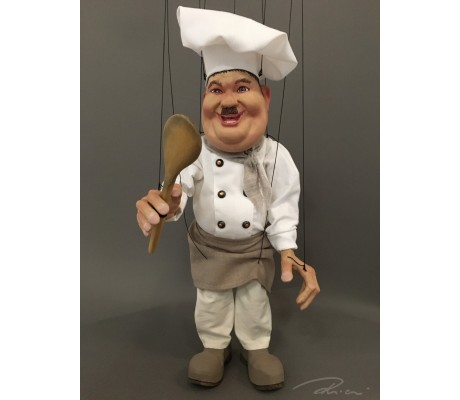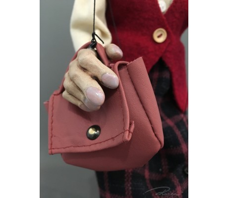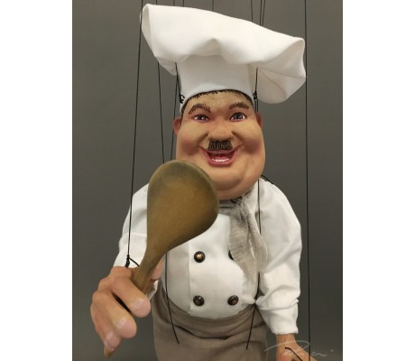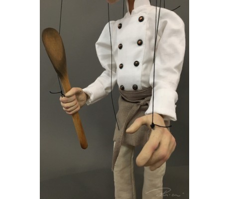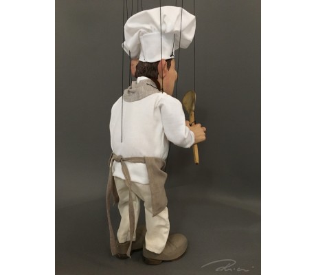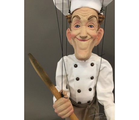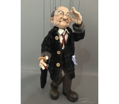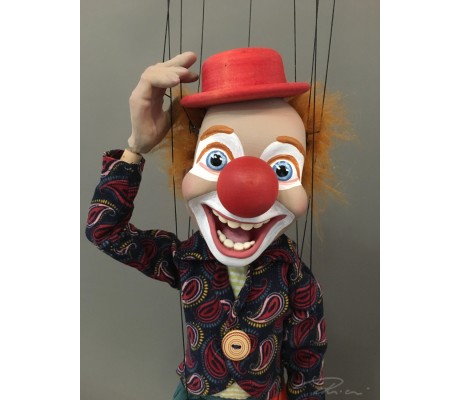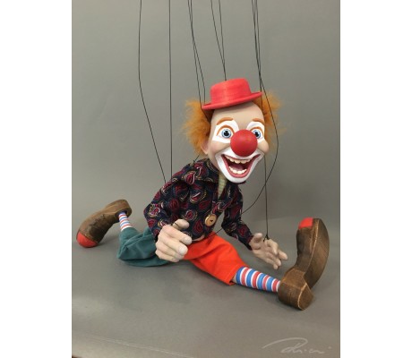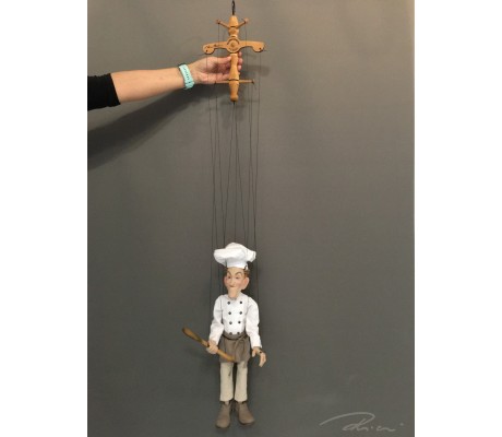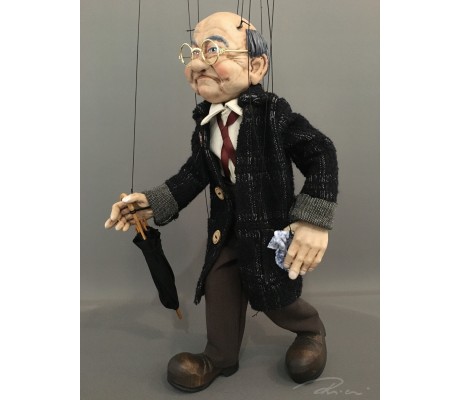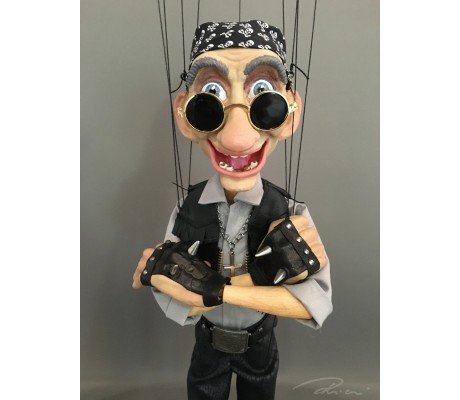 -Pupazzo professionale CHAPLIN artigianale costruito in materiale rigido (resina) con gambo in metallo, gamba e calzatura in legno intagliato e dipinto a mano.