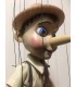-PINOCHO burattino professionale artigianale costruito in materiale rigido (resina) con stelo in metallo, gamba e calzatura in legno intagliato e dipinto a mano.